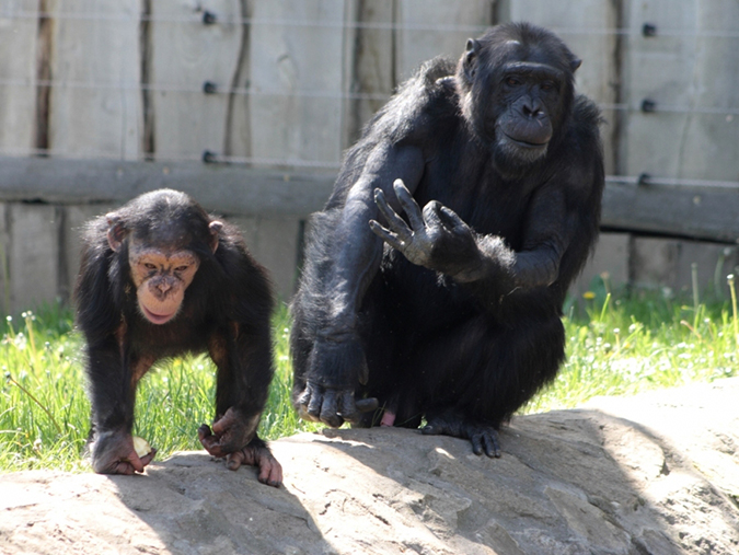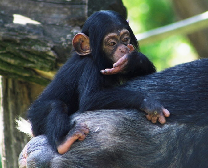 Sok kölyökállattal lehet találkozni az Állatkertben. Malipo, a 2011 júniusában született csimpánzkölyök is elég önálló már, de az anyja mindig a közelében tartózkodik. Sokat tornászott, bohóckodott a kölyök ezen a napon, én is sokáig néztem. A látogatók répadarabokat hoztak nekik (ez legalább megfelelő táplálék, bár erre a plusz ételre sincs szükségük), s átdobták a vizesárkon. Az egyik felnőtt és a kicsi is szívesen ette. Az egyik darab beesett a vízbe, s a nyújtózkodó Malipo nem érte el. De nem jött zavarba, elkezdte maga felé kanalazni a vizet a kezével, s az áramlás kihozta a répadarabot is. Ügyes!