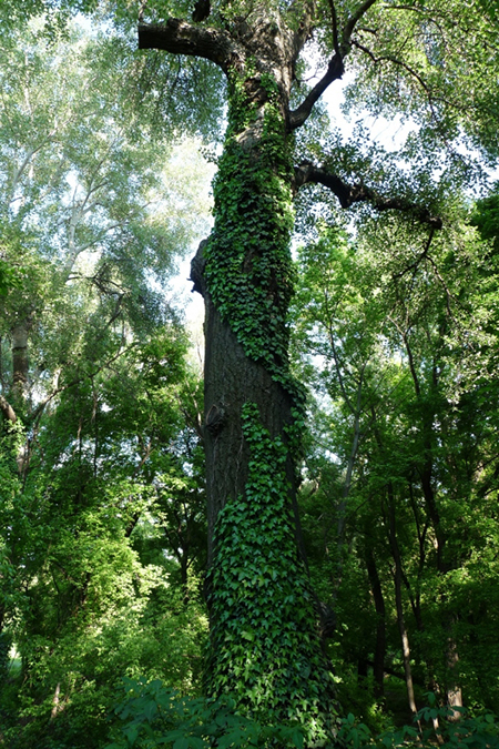 Az ösvényről most nem a Duna felé tértem le, hanem jobbra, a sziget belseje felé. (Bár a Dunánál is láttam már érdekeset tavaly: egy nagy ékszerteknőst, ami egészen úgy nézett ki, mint aki a szabadban telelt át. Bizony az egykori terráriumi állatok sajnos nagyon elterjedtek a természetben!) Most olyan részt választottam, ahová nem jutott el a kertészek fűnyírója. Élveztem a sok pitypang fehérbe fordult fejecskéjét. Néhol a fekete nadálytő bókoló (lefelé csüngő) virágai tarkították a pitypangmezőt. A „fekete” név megtévesztő, mert általában lila, néha rózsaszín vagy akár fehér is lehet a virága.
