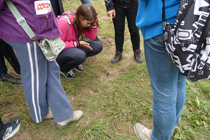 Menet közben életnyomokra „vadásztunk”. Többféle állati ürüléket sikerült meghatároznunk a határozó segítségével (nyest, őz), találtunk gubacsokat, láttunk lábnyomot. Szinte mindenki talált ganéjtúró bogarat (a tavaszi és az erdei fajhoz tartoztak). Végül már nem is a faj újabb egyede volt az érdekes, hanem hogy milyen újabb színváltozatot sikerül találni.