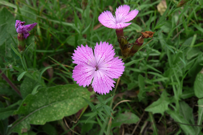 A Gyadai- réten gyönyörű hernyót láttunk, aki békésen tűrte, hogy fotózzuk. Utólag kiderült, hogy a galajszender nevű lepke hernyója volt. A rét másik részén szinte kaszálni lehetett a sok őszi kikericset. Persze nemhogy nem kaszáltuk, de le sem szedtük őket, mert részint védett, részint mérgező növény. A rózsaszín virágokat a dunai szegfű szép példányai is képviselték.