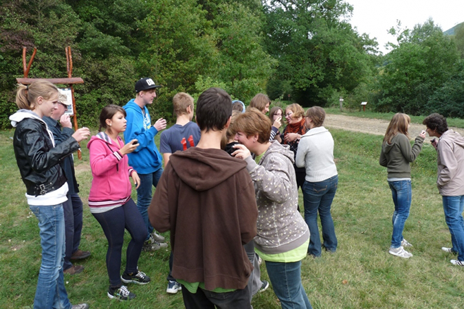 A tanösvény elején kialakított kis mesterséges tó partján egy ismerkedős játékkal indítottuk a napot, hiszen a jelenlévő 17 fő között „öreg” szakkörösök, idei új diákok, szülők és testvérek egyaránt jelen voltak.