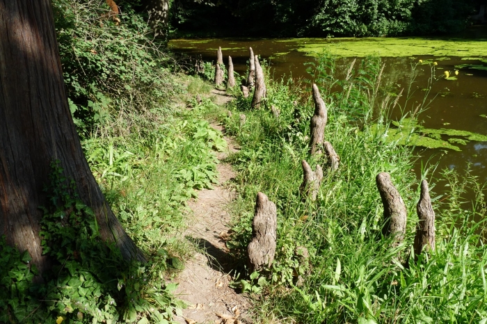 Sok szépséget rejt a park minden zuga. A különleges növényfajokra és idős egyedekre részletes leírások hívják fel a figyelmet. Nyilván nem minden növény kaphat ilyen nagy táblát, de a fajok nevét sok helyen kiírják. Az új táblák nagyon esztétikusak! A sokféle fenyőnek mind más a toboza. Én is megcsodáltam néhányat, de látszott, hogy a mókusok még intenzívebb érdeklődést mutatnak a tobozok, főként a bennük rejtőző finom magok iránt.