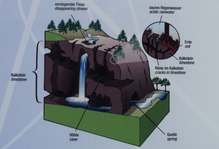 A mészkővidékeken a felszínen főként negatív formákat láthatunk, vagyis olyan helyeket, ahonnan „hiányzik” a mészkő. Hogy hová lett? Kioldódott. A mészkő tiszta vízben nem oldódik, de savas vízben igen. Tévedés lenne azt gondolni, hogy az esővíz csak valami környezetszennyezésből kifolyóan válhat savassá. Hiszen karsztformák már sokkal az ember jelenléte előtt is voltak a bolygónkon. Hol válik savassá a semlegesként lehullott esővíz? A talajban. A talajon átszivárogva ugyanis felveszi az ott található szén-dioxidot, ami részben a talajlakó élőlények légzéséből származik. A vízben oldott szén-dioxid a szénsav. Ha nem félünk a képletektől (ugyan már, minek is félnénk?!), akkor így írható le: CO2 + H2O = H2CO3