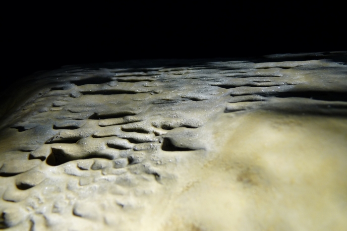 Apró mésztufalépcsők a Krizna-barlangban (Szlovénia)