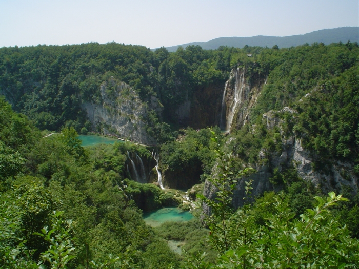 Mésztufalépcsők,tavak és vízesések a Plitvicei-tavaknál (Horvátország)