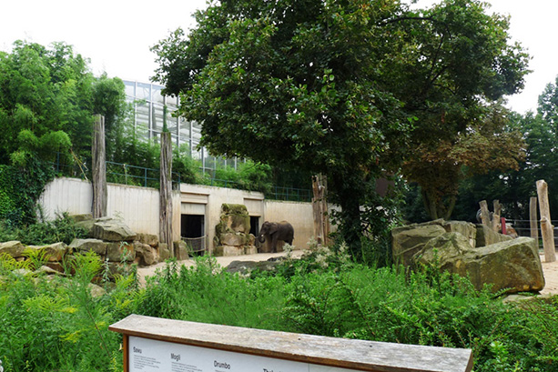 Bent az Afrika-házban minden növény is afrikai. Sok az ismertető tábla, bár néha nélkülük is ismerősre lelhetünk. A nálunk szobanövényként tartott Sansaverát itt láttam először virágozni. Éppen az afrikai elefántok fürdetése közben érkeztünk. Három felnőtt nőstényt tartanak, valamint egyikük bikaborját. A felnőtteket külön boxokban fürdette egy-egy ápoló. Halk parancsszavakra azonnal engedelmeskedtek az állatok: a megfelelő oldalra álltak, lefeküdtek, felkeltek. A fürdetés után vizsgálat következett, szemmel láthatóan egy meghatározott menet szerint, mindhárom állatnál egyforma sorrendben. Az állatok parancsra egyesével megemelték a lábaikat, kitátották a szájukat, szétterpesztették a hátsó lábukat. Az ápoló pedig megnézte és megtapogatta a testrészeiket, így szoktatva őket egy esetleges orvosi vizsgálathoz. A legviccesebb a fülápolás volt: az utasításra hirtelen előrelendült az állat jobb füle, derékszögben elállt a fejétől, míg a másik a testéhez simult. Az ápoló krémmel kente be a füle mögötti részt. Aztán folytatta a másik füllel. Az ügyesen végrehajtott feladatok után enni kaptak az állatok. Nagyon tetszettek az ismertető táblák, például az afrikai és az ázsiai (indiai) elefántok testi különbségeit bemutató tábla igazán mindenre kiterjedt. A fajismertetőkön kívül magukról az egyedekről is megtudhattunk információkat: korukat, származásukat, sőt a jellemükről is írtak néhány kedves mondatot. A zebráknál például felhívták a figyelmünket a három példány egyedi különbségeire. Jó játék volt megpróbálni beazonosítani őket. Ez nagyon fontos a látogatók számára! Így szinte személyes ismerősükké válnak az állatok. Ez a szemlélet még sajnos hiányzik itthon, pedig biztos vagyok benne, hogy sokat lendítene még az örökbefogadások számán is.