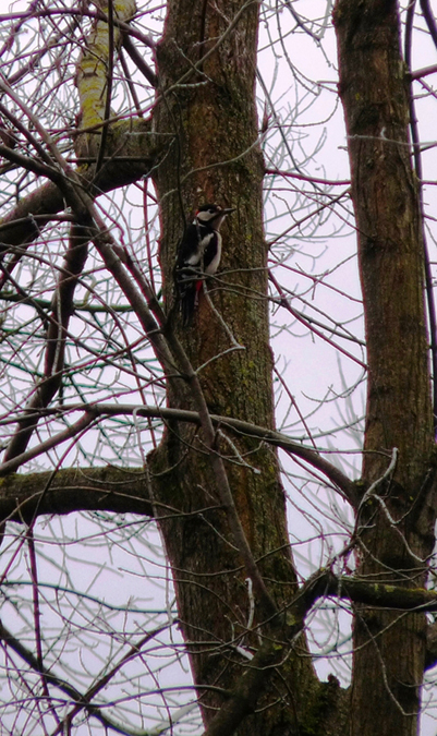 Ha nagyon sok réce nem is kényeztetett minket, azért az „aprólékokból” bőven láttunk: széncinkék keresgéltek táplálékot az ágak között, csuszkák csatlakoztak hozzájuk. Az apró, kéregnek álcázott és a fakérgen felfelé közlekedő fakuszt igyekeztem lefotózni, de most sem lett tökéletes a kép. A nagyobb és feltűnőbb színű nagy fakopáncs már könnyebb célpontot nyújtott. Vác felé közeledve hallatta a hangját a fekete harkály, de én nem láttam meg hazánk e legnagyobb harkályát. Igaz, nem is „járt nekem” a látványa, hiszen itt egy korábbi alkalommal már hagyta magát fotózni. Megfigyeltünk két kék cinkét, akik egy faodút mértek fel, sürgölődve ki-be járva az üregbe. Kétszer is láttam elsuhanni a fák között egy ragadozót, s mivel ha találomra hangosan kimondtam egy kérdést, rögtön akadt szakember, aki tudott rá válaszolni, így azt is tudom, hogy egerészölyv volt. Szeretem, ha a környezetemben az egy négyzetméterre jutó madarászok száma meghaladja 1 főt!