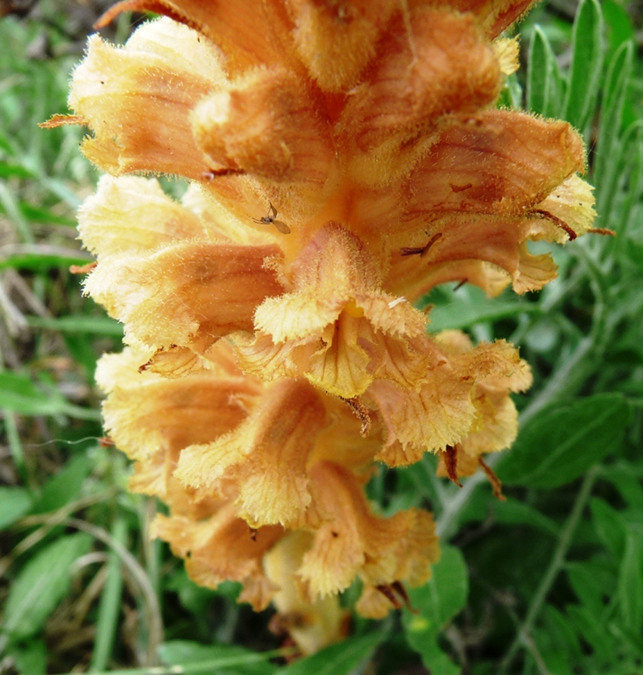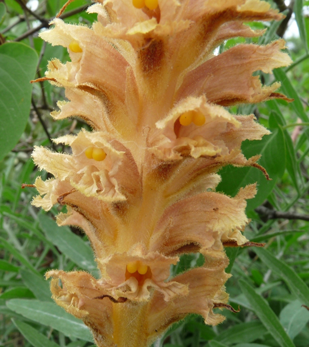 Figyeljük meg a képeken a virágok szépségét, szerkezetét! A szirmok összenőttek, úgynevezett pártát alkotnak. A párta széle 5 részre tagolódik, ezeket cimpáknak nevezzük. Felül két, alul 3 cimpa látható, olyan, mint egy nyitott száj. Belül helyezkednek el a porzók és a termő. A termés a termőből fejlődik és több ezer magot tartalmaz, de azok egészen aprók. A talajba jutva sokáig várakoznak, csak akkor fejlődnek ki, ha a gazdanövény gyökere a közelükbe ér. (Hogy ezt honnan tudják? Minden valószínűség szerint a gazdanövény gyökere által kibocsátott kémiai anyagok indítják be a csírázást.) A fiatal növény első teendője, hogy szoros kapcsolatot alakítson ki a gazdanövénnyel. Nélküle elpusztulna.
