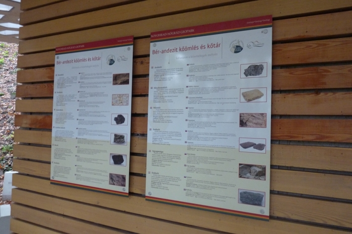 A bánya közelében nemrég egy kőtár épült, amely egy jelképes épület. Látványnak nem rossz, de még eső ellen sem véd. A teteje az andezit oszlopok keresztmetszetét idézi a maga 5-6 szögű lyukaival. Körülötte a környék kőzeteiből látható egy gyűjtemény. A falakon olvasható kőzetleírások nekem nem tetszenek. Nem világos belőlük, hogy csak konkrétan ezekre a helyi típusokra vonatkoznak, nem pedig általános kőzetleírások. Sajnos bőven tartalmaznak magyartalan mondatokat, nyomtatási hibákat is. Csak remélni merem, hogy a szlovák és az angol szöveg nem ilyen!