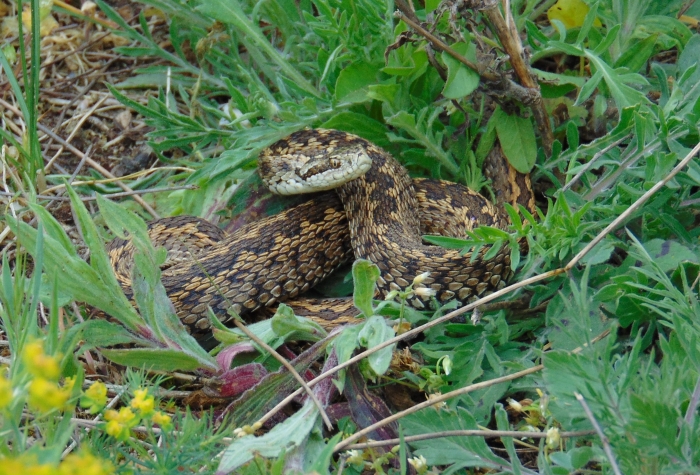 Két viperánk nekünk is van, akik kétségtelenül méreggel rendelkező kígyók. Esélyünk, hogy találkozzunk velük, igen csekély. Hogy meg is marjanak, az végképp nem valószínű. Kisméretű (50 cm körüliek a felnőttek), félénk fajok, akik kerülik az ember és a lakóhelyek közelségét. Én többször jártam a Kunpeszéren található Rákosi Vipera Védelmi Központban, ahol mindent megtesznek e kihalással veszélyeztetett faj megmentéséért. A rákosi vipera a füves élőhelyeket kedveli, itt vadászgat, főként nagyobb rovarokra. Őt sokkal több veszély fenyegeti, mint amekkorát ő jelent számunkra. Szívesen eszik viperát minden varjúféle, a gólyák, a gémek, a túzok, a sün és még ki tudja, ki mindenki. Pocoklyukakba szokott elbújni előlük, illetve ott is telel. Színezete úgy elrejti, hogy még a körülkerített kifutókban is nehéz rálelni. Hátán cikkcakk minta húzódik, ahogy az egy rendes viperához illik. Mivel már a lépteink keltette rezgés is elijeszti, nem fogunk rálépni. Mérge nem veszélyes, enyhe rosszullétet okoz. (Allergiás reakció viszont bármely idegen anyag ellen kialakulhat, így a méreggel szemben is.) Érdekesség, hogy minden példánynak egyedi mintázata van a fején. A kutatók fotók alapján be tudják azonosítani őket. Ha módod van pl. terráriumban közelről a viperák szemébe nézni, megláthatod, hogy szembogaruk (pupillájuk) függőleges, mint a macskáké. A siklóké kerek, mint a miénk.