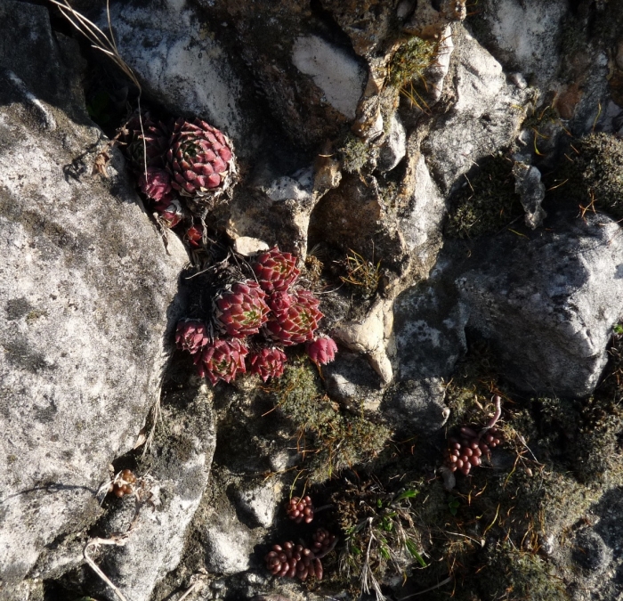 Tavasszal nagyon gazdag szép virágokban az aljnövényzet. A természetes sziklakertben törpe nőszirmok virítanak lila, sárga, sőt lila-sárga színekben. Budapesten a Hármashatár-hegyen, a vitorlázó repülőtérre néző oldalon lehet gyönyörködni bennük (ha az ember nem megy fel a csúcsig, csak a Szépvölgyi út egyenes folytatásában lévő alsó parkolókig). Igazán látványos, magas, feltűnő faj a nagyezerjófű. Nevéből már tudhatjuk, hogy népi gyógyszer. Ne szedjük le, mert védett, s mert saját magát is védi: érintése többeknél nehezen gyógyuló, fájó hólyagokat okoz a bőrön. De semmi akadálya, hogy megcsodáljuk vagy lefényképezzük a szépségét! A szikla repedéseiben virít a sárga kövirózsa. Pozsgás, vízraktározó levelei közül csak akkor nő magasra a virágzó hajtás, ha már sok kis új növényke veszi körül az idős tövet. Ezek ivartalanul képződtek, míg az ivaros szaporodást a virág és a belőle fejlődő termés biztosítja. A növény semmit nem bíz a véletlenre, hiszen az egyetlen virágzás után elpusztul, helyben a továbbélést a klónozott kicsinyei, távolabbra terjedését a magjai szolgálják. A fák is előbb-utóbb virágba borulnak. A virágos kőris ilyen kor rászolgál a nevére: alig látszik a fa a sok szép, fehéres-sárgás virágzattól, a rovarok legnagyobb örömére. Kevésbé feltűnő, de szép a galagonya virága is.