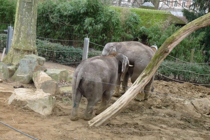 A sok érdekes látnivalón kívül váratlanul nagy élmény volt az állatkert két kiselefántjának elevensége, játékos verekedésének látványa. A háromnyelvű (!) információs tábláról megtudtam, hogy a fiatal indiai elefántok egyike Budi, aki 2008-ban Dublinban született, a másik pedig Ming Jung, aki 2007-ben Kölnben látta meg a napvilágot. Mindketten fiatal hímek, akik addig maradnak Antwerpenben, amíg ivarérettek nem lesznek. Ezután döntenek majd arról, hogy hol vesznek részt szaporítási programban. Addig is szemmel láthatóan élvezik egymás társaságát az Egyiptomi Ház kifutójában. Ez a ház az egyik legrégebbi épület az állatkertben, 1856-ban épült. 1988-ban teljesen felújították. Falain a hieroglifák igaz történetet mesélnek el: az afrikai állatok ideszállítását. Most zsiráfok és ázsiai elefántok élnek az Egyiptomi Házban.