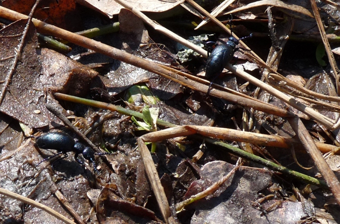 A lábam előtt, a száraz nádleveleken is megmozdult valami. Nem is kicsi valami: egy nünüke. Szépségesen, csillogóan kék bogarunk nemrég ébredhetett, s láthatóan farkaséhesen vetette rá magát a még alig látszó zöld hajtásokra. Az evésben semmi sem tarthatta fenn: se az, amikor én centikről fényképeztem, se az, amikor egy kiránduló család kutyája odafutott hozzám barátkozni, s gyakorlatilag ráállt a nünükére. Mikor a kutya elfutott, aggódva kerestem a bogarat, de az csak visszafordult a hátáról a hasára, s ott folytatta az evést, ahol az előbb bosszantó módon félbeszakították. Nemsokára két újabb nünüke tűnt fel a színen, az egyik a másik hátára kapaszkodott. A romantikus légyottot félbeszakította az a tény, hogy belegyalogoltak a vízbe, s ez erősen lehűtötte az érzelmeket, hiszen életmentési okokból sürgősen ki kellett kecmeregniük. Külön-külön folytatták útjukat. Egy bimbózó kapcsolat végének lehettem szemtanúja.