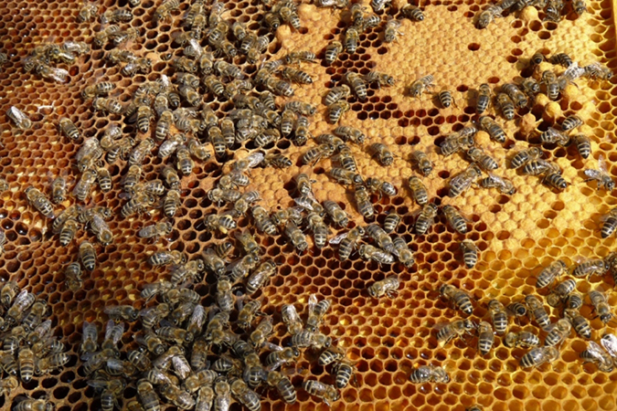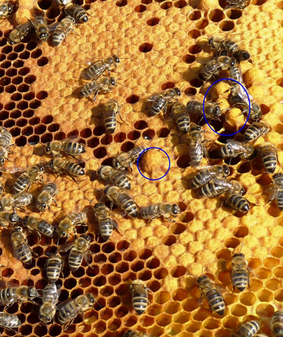 A lépekben nevelik a lárvákat a dolgozók. A képeken a kiemelkedő dudodroknak látszó sejtekben nevelkednek a herék.