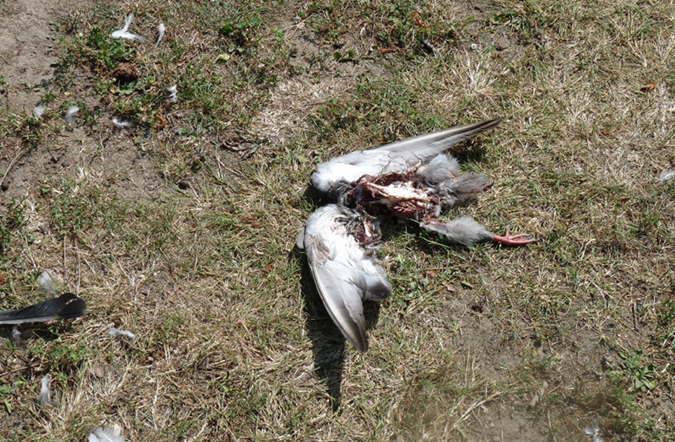 A tóról kiderült, hogy a közepén egy nagy sziget helyezkedik el. A sziget melletti ágba érve egy jégmadár, majd egy szürke gém repült fel előlem. Már ez sem egy mindennapi élmény Párizsban, hát még, hogy a gém nem ment messzire, hanem leszállt egy közeli, víz fölé hajló bokorra. Ide azonnal követte két varjú. A varjak egy közeli ágra szálltak le, de csak egy pillanatra, mert szinte azonnal támadást indítottak a gém ellen. Vadászbombázóként zuhantak rá többször egymás után, annyira, hogy a gémnek össze kellett húznia magát, hogy elkerülje az ütközést. A néhány támadás kielégítette a varjak szórakozási vágyát, s elrepültek. A gémet mégis felzaklathatta ennyi szemtelenség, mert némi nézelődés után ő is elrepült. Hogy miért nem használta a kitűnő fegyvernek is beillő hosszú csőrét, azt nem tudom. Talán nem kockáztatott egy esetleges sérülést egy olyan szituációban, melyben nem forgott veszélyben. A varjak azonban más madarakra igazi veszélyt jelentenek. Itt és más parkokban is láttam galambtetemeket, melyeket egyértelműen madár ejtett el. Valami kisebb ragadozóra gyanakodtam (ami nem lehetetlen még egy nagyvárosban sem), egészen addig, amíg tanúja nem lettem egy támadásnak a Tuilériák kertjében. Az emberek által etetett egyik galambot egy varjú meg tudta közelíteni, majd ledöntötte a lábáról és gyakorlatilag ráállt a fejére. A vergődő galambot az mentette meg, hogy két fiatalember közelebb lépett, mire a varjú eleresztette zsákmányát.