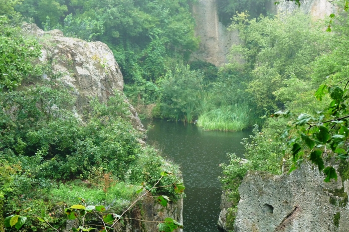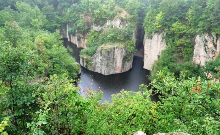 A bányászat eredményeképpen meredek sziklafalak és egy mély bányaudvar keletkezett. Ez utóbbiban gyűlt össze az a víz, ami ma az érdekes alakú tavat alkotja. A partjait függőleges sziklafalak határolják, s emiatt azt gondolná az ember, hogy a víz is nagyon mély, de a maximális mélysége csak 6,5 m. Amíg folyt a bányászat, az összegyűlő fenékvizet egy vízlevezető vágat készítésével igyekeztek levezetni.