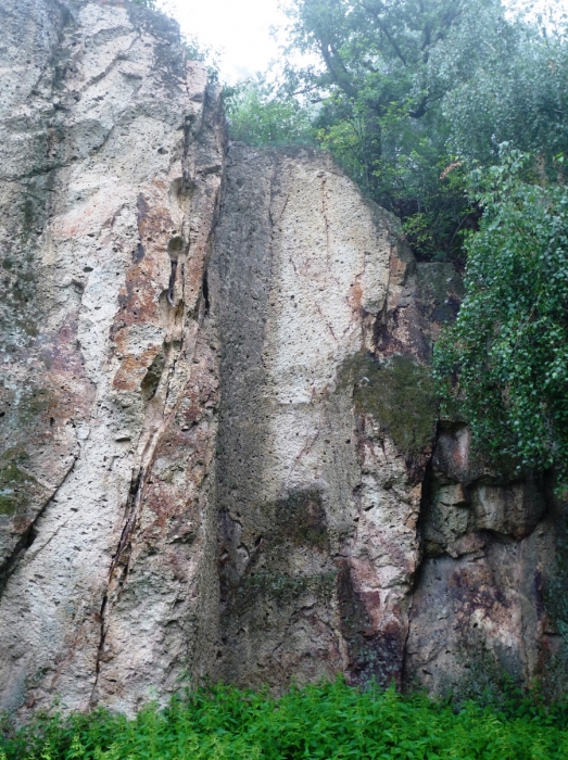 A sziklafalon látszik a kibányászott kövek alakja