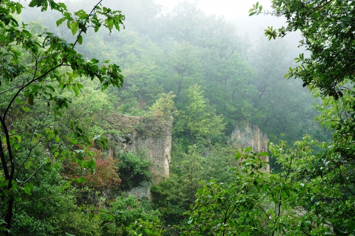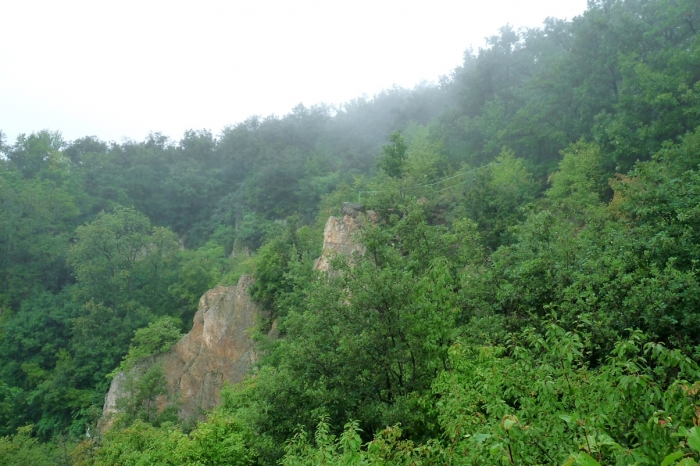 Tulajdonképpen egy kőbányában járunk. A Megyer-hegy vulkáni eredetű, főként lyukacsos riolittufából áll. Ezt a gyakran puha kőzetet ebben az esetben kovasav járta át, amitől nagyon kemény lett. Ezért lett alkalmas malomkő készítésére. A Zempléni-hegységben nemcsak gabonaőrléshez használtak malomköveket, hanem az ércek megőrléséhez is. A Telkibányán lévő Múzeum kertjében láthatunk ilyen ércőrlő malomköveket. A megyer-hegyi bányászat már a középkorban elkezdődött és egészen 1907-ig tartott. A sziklafalak tanúsága szerint úgy fejtették a követ, hogy azonnal hengerszerű alakot képeztek ki, hogy könnyű legyen belőle malomkövet faragni. El sem tudom képzelni, hogy egyszerű szerszámokkal és kézi erővel ez hogy sikerülhetett! Arról nem is beszélve, hogy a kövek megmozdítása és szekérrel való elszállítása sem lehetett egyszerű ügy! Márpedig megoldották, mert évszázadokon át működött.
