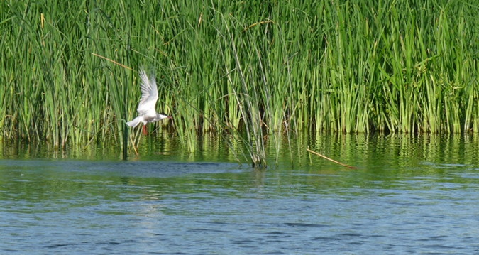 A motor halkan duruzsolt, s kellemes tempóban tettük meg nagy körünket a tavon, ami gyakorlatilag annak minden részét érintette. Érdekes, változatos ez a tó: néhol szűk csatornákon, zsilipeken haladtunk, másutt nádas ölelte kis öblökbe tértünk be, megint másutt szinte félelmetes, hatalmas víztükör nyílt meg előttünk. Vannak a tóban „útjelző táblák”, melyek kiváló kilátópontul szolgálnak a sirályoknak. Az ezüstsirályok igazán impozáns méretű madarak!