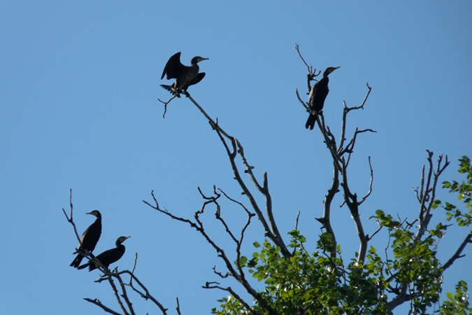 Mivel ez az állóvíz a Tisza felduzzasztásából keletkezett, egyes helyein az elárasztott gyümölcsösök fái állnak ki a vízből. Itt szárítgatják átázott tollaikat a kárókatonák. A kárókatonák mélyre tudnak merülni, kiválóan úsznak a víz alatt, sikeres halászok. Ebben segíti őket zsírozatlan tolluk, ami azonban átázik. Ezért szárítkoznak olyan gyakran széttárt szárnyakkal. Amúgy elég bizarr látvány, hogy a tóból fák állnak ki! Igazán azok a fák veszélyesek, melyek nem állnak ki, s mint tuskók húzódnak meg alattomosan a víz színe alatt. Igazán örültünk, hogy nem indultunk el a saját szakállunkra, hanem egy vezetőre bíztuk magunkat!