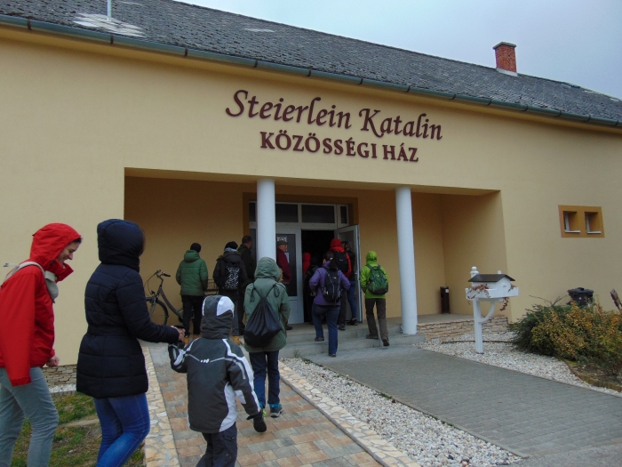 Egész napra felhős időt, szórványos esőket jósoltak, de ennek ellenére kb. ötvenen gyűltünk össze Bándon, a Szent Anna templom előtt. Szakvezetőnk, Sárdy Julianna köszöntötte a résztvevőket, aztán a templom megtekintésére biztatta a társaságot. A falakon megnézhettük a napjainkban készült szentképeket, melyeket hagyományos ikonfestészeti technikával festett Dömsödi Izabella művésznő. Bemehettünk a közeli művelődési házba is, ahol megismerkedhettünk a névadó, a 40 évig a helyi iskolában tanító Steierlein Katalin életútjával. A környék geológiáját két tárolóban szép ősmaradványok mutatják be: hatalmas kagylófélék, Megalodusok (Neomegalodon) megkövesedett maradványait láthatjuk például. Ezek a kagylók a triászban népesítették be a sekélytengereket. Ősmaradványaik kőbél típusúak, ami azt jelenti, hogy az elpusztult kagyló héjába olyan mésziszap került, ami megszilárdulva ellenállóbbnak bizonyult, mint maga a héj, így ez a belső rész maradt meg (mint egy gipszöntvény), míg az eredeti külső váz már nincs meg.