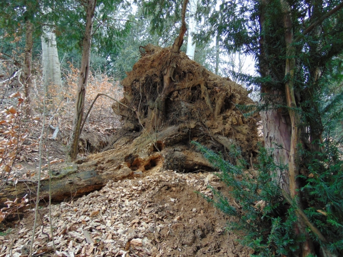 Azt örömmel láttam, hogy a kidőlt bükkfákat a helyszínen hagyják, s látható is volt, mennyi gombának, rovarnak, s az őket fogyasztó állatok tömegének adnak otthont. Többfelé kopácsoltak harkályok, felettünk egy hollópár kiáltotta világgá, hogy itt a tavasz. Az aljnövényzetben tömegesen virított a szerény, sárga virágú bókoló fogasír. Érdekesség, hogy valóban a fogra használták írként, mert magas C-vitamin tartalma gyógyítja a skorbut okozta fogínysorvadást. Szintén most virágzott a védett babérboroszlán. Haragoszöld levelei között bújtak meg apró virágai. Termését hasonlóan terjeszti, mint a tiszafa a magját, ezt is állatok eszik meg, s az emésztés során a maghéj elvékonyodik, s így az ürülékkel kikerülő mag könnyen kicsírázik.
