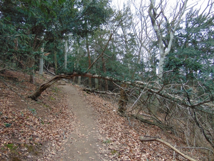 A várból egy ösvény vezet a Tiszafás felé. Útközben láthatjuk az Aranyos- és a Séd-patak összefolyását. Egykor sok vízimalom működött a környéken, itt is látható egy, bár ma már lakóháznak van átalakítva. Én azonban ekkor már nem a patakokra, hanem a tiszafás hegyoldalra figyeltem. Kora tavasz lévén már a távolból feltűntek az örökzöld tiszafa sötét foltjai.