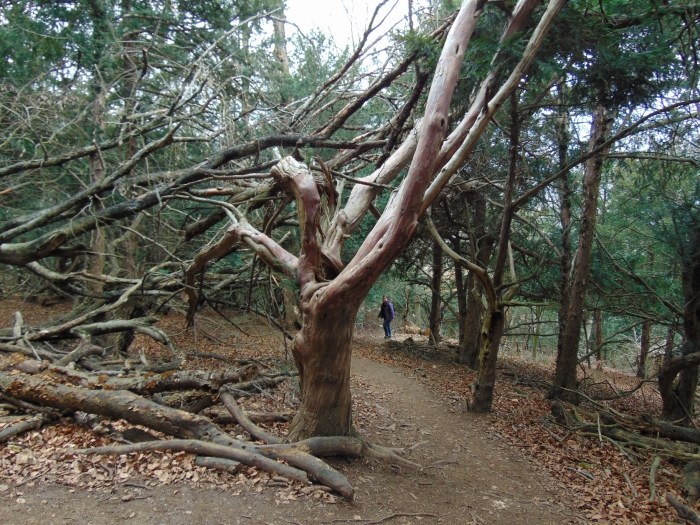 Na de végre beértünk a tiszafák közé! Eleinte csak a bükkök alatt elszórva tűnt fel egy-egy példány, aztán feljebb már ligetes tiszafásban sétálhattunk. A tiszafa különleges tulajdonságokkal bíró fafaj. Lássunk néhányat ezek közül:
