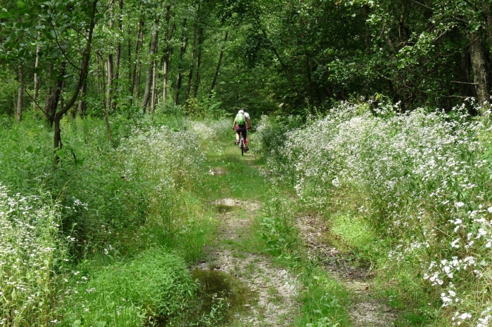 Séta közben néhány más kirándulóval is találkoztam. Jártak arra biciklisták is, ez a tanösvény biciklivel is jól járható. Az Őrség amúgy is kedvelt biciklis terep. A szelíd dombok néha megtévesztőek, magam is kipróbáltam őket, s időnként bizony leszálltam, hogy toljam a bicajt. Ezen a tanösvényen azonban nincs emelkedő.