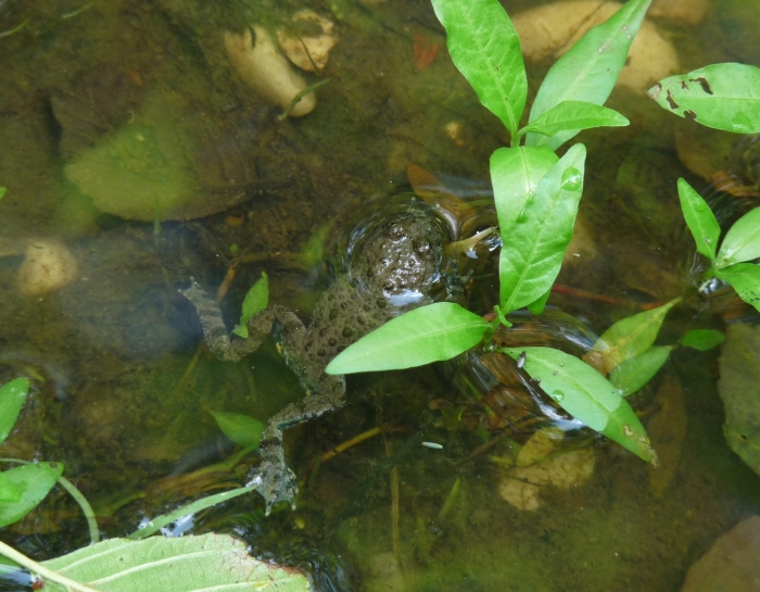 Néhány másik tócsa közelébe érve hangos csobbanás hallatszott, ez árulta el, hogy béka van benne. Nem könnyű észrevenni, mert az unkák kicsik és a hátuk rejtőszínű. A hasuk viszont feltűnően foltos, sárga vagy piros színekben pompázik. Ezzel mutatják, hogy nem érdemes megkóstolni őket, mert mérgezőek.