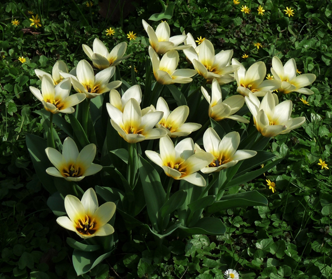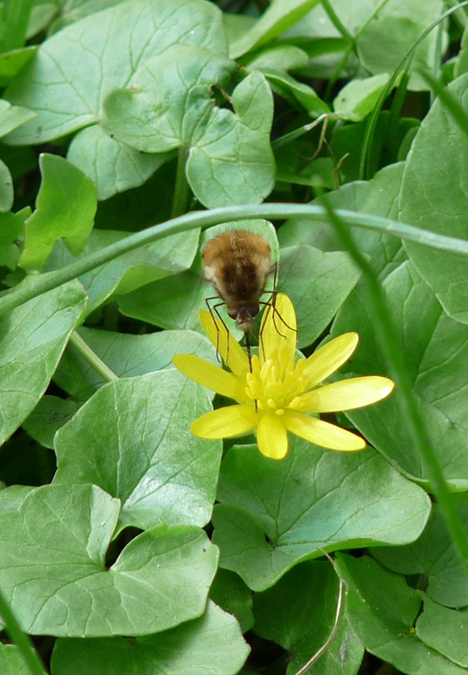 A kellemes napsütésben a kertben a tavaszi virágokban és a madarakban lehetett gyönyörködni. A szabadban a korai kerti virágok nyílnak, például a tulipánok, jácintok. A hazai erdei aljnövényzet virágai azonban nekem még jobban tetszenek, itt őket is meg lehet találni: bogláros szellőrózsát, keltikéket, csillagvirágot. A salátaboglárkákon egy pöszörlegyet láttam. Úgy lebeg a virágok előtt, mint egy kolibri, csak persze sokkal kisebb. Hosszú szívókáját benyújtja a nektárért.