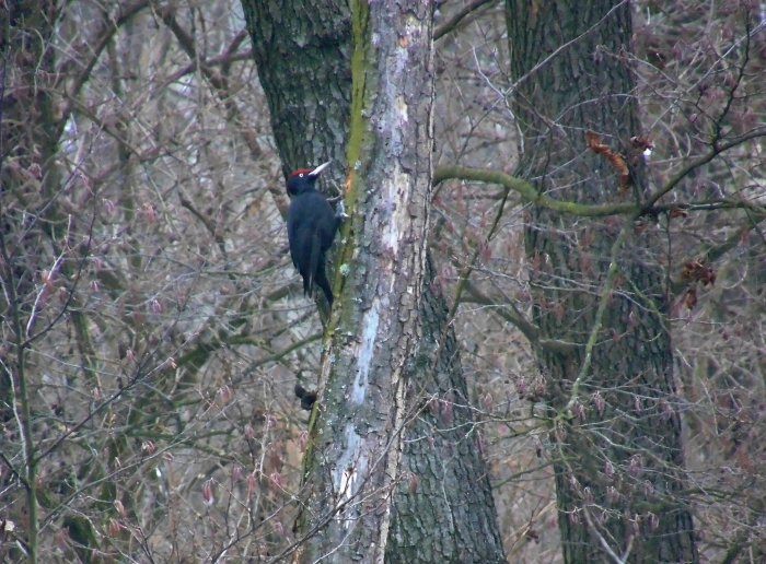 De más ajándékot azért még tartogatott számomra a terület. Először csak a hangját hallottam két, egymásnak felelgető fekete harkálynak, aztán meg is láthattam mindkettőjüket. Állandó kapcsolatot tartva egymással, kopogtatták a fákat, békésen táplálkoztak, ügyet se vetettek rám. Azért nagyon közel nem jöttek, de így is megtiszteltetésnek vettem a bizalmukat. Nem sokkal később egy jégmadár is elcikázott a közelemben. Egy pillanatra megült egy faágon, majd továbbállt. Örültem, hogy láttam, bár fotózni sajnos nem sikerült.