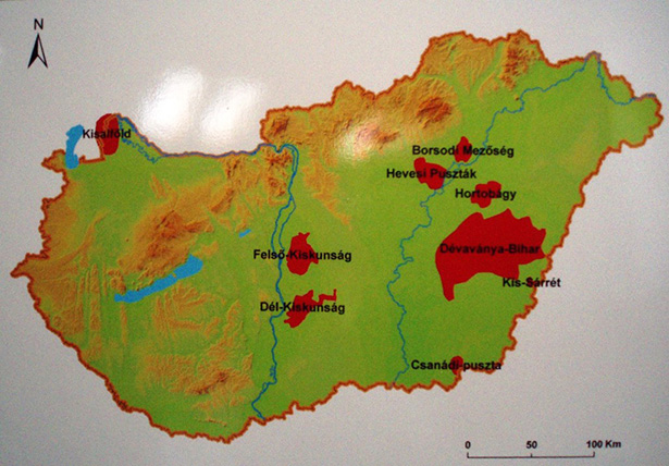 Magyarországon az Alföldön, két nemzeti parkunk területén költ: a Körös-Maros NP területén, főként Dévaványán, valamint a Kiskunsági NP-ban. (2.kép) Ez utóbbi helyen sikerült nekünk is 2009-ben túzokot, sőt dürgő túzokkakasokat megfigyelni. A képeken olyan sérült madár látható, amely a dévaványai túzokmentő központ bekerített területén él és virul, párja is van, de repülni nem tud. A vadmadarakat a távolság miatt mi távcsövön nézegettük,de fotózni nem tudtuk.