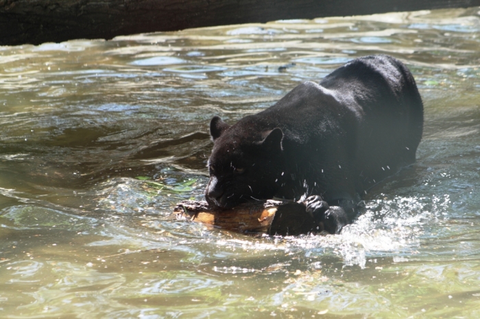 Fekete jaguár játszik a vízben
